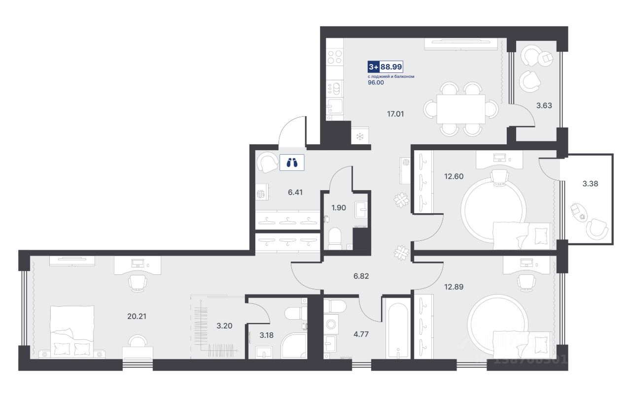 Общая площадь88,99 м²