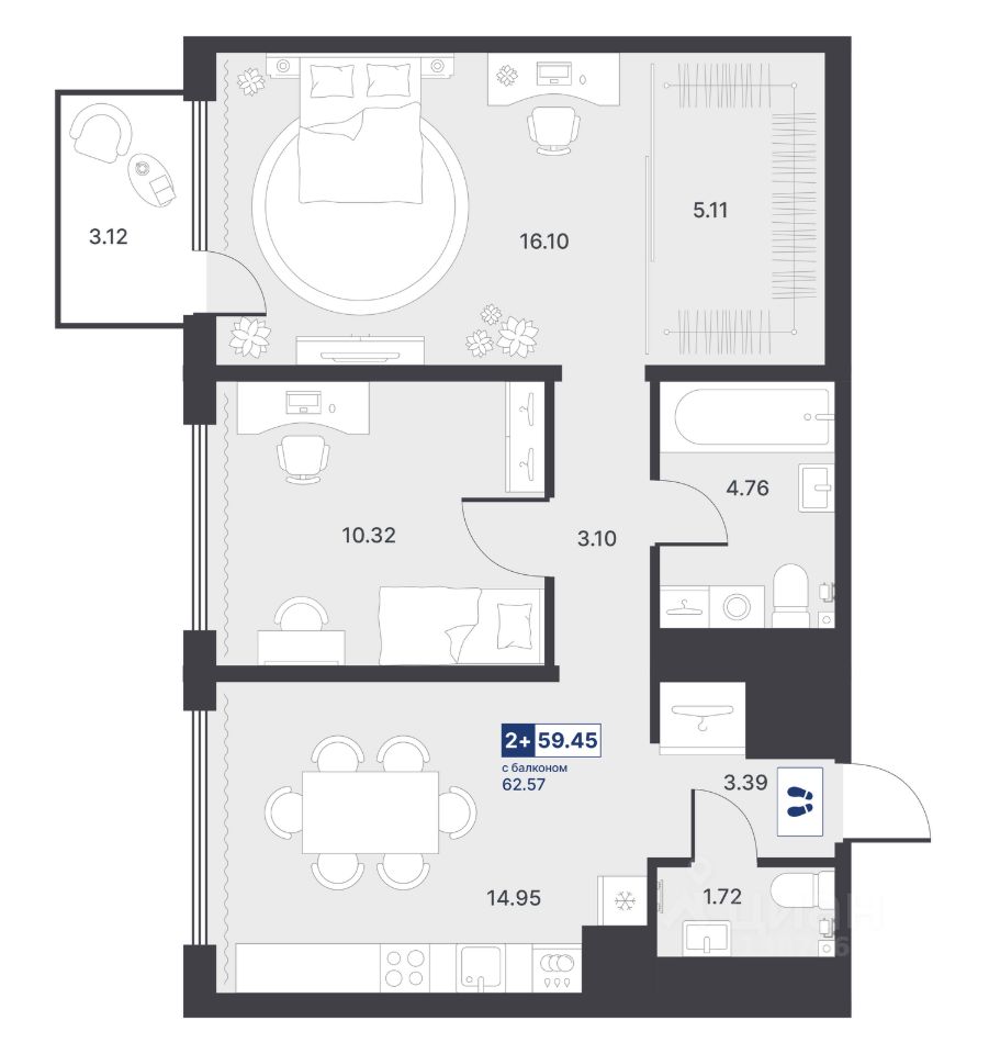 Общая площадь59,45 м²