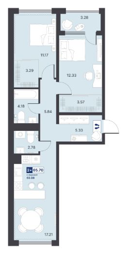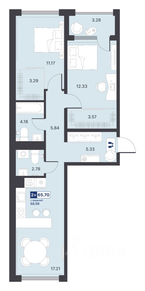Общая площадь65,7 м²
