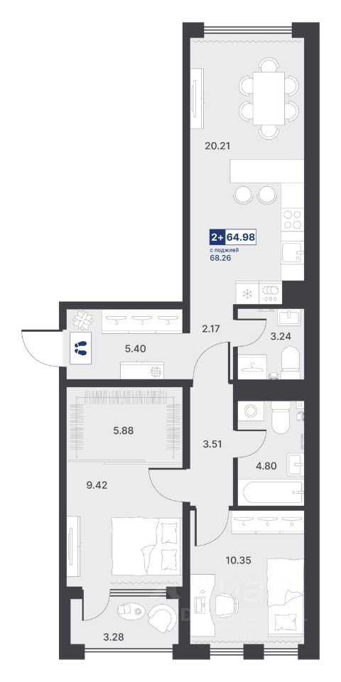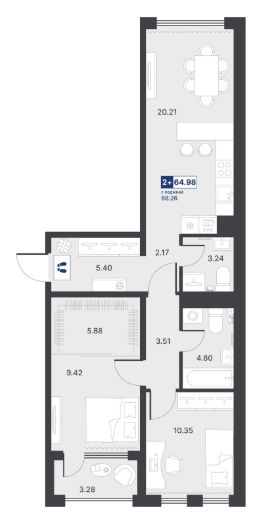 Общая площадь64,98 м²