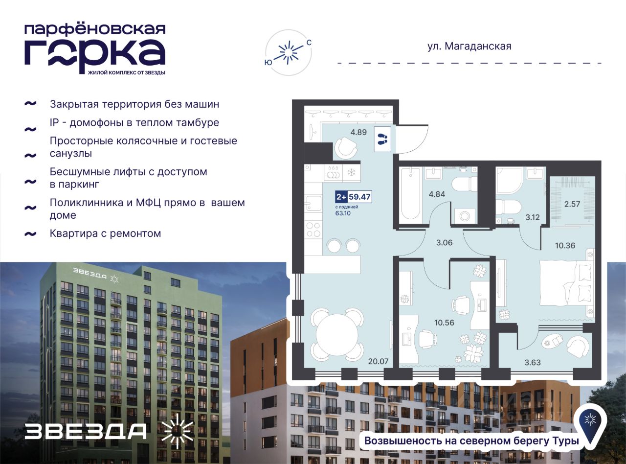 Название ЖК — не просто метафора, а часть истории Тюмени. В XVII веке на северном берегу Туры на возвышении основали деревню Парфенова. Сегодня на этом месте "Звезда" возводит современный ЖК комфорт-класса. Проект комплексного развития территории преобразит знакомый район Тюмени. В локации построят поликлинику с дневным стационаром на 100 посещений в смену и МФЦ. На первых этажах ЖК откроются супермаркеты, магазины, салоны и сервисы на каждый день — всё, что необходимо для комфортной жизни. Обслуживать дома будет сервисная компания "Звезда Управляет".
