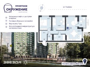 ЖК "Приятное окружение" комфорт-класса сочетает лаконичную архитектуру, продуманное благоустройство и эргономичные планировки. Двухсекционный дом с переменной этажностью расположен в уникальном месте: с одной стороны — дамба, с другой — зелёные массивы. Важно, что на стороне дамбы не предусмотрено строительство новых домов, а значит, из окон комплекса всегда будут открываться живописные виды на природный ландшафт. Есть квартиры с панорамными окнами и видами на набережную и мост Влюбленных. А в праздничные дни можно любоваться фейерверками, не выходя из дома.