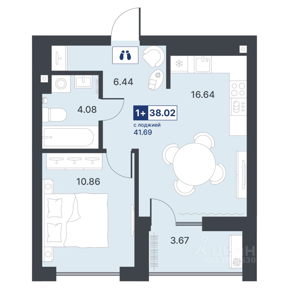 Общая площадь38,02 м²