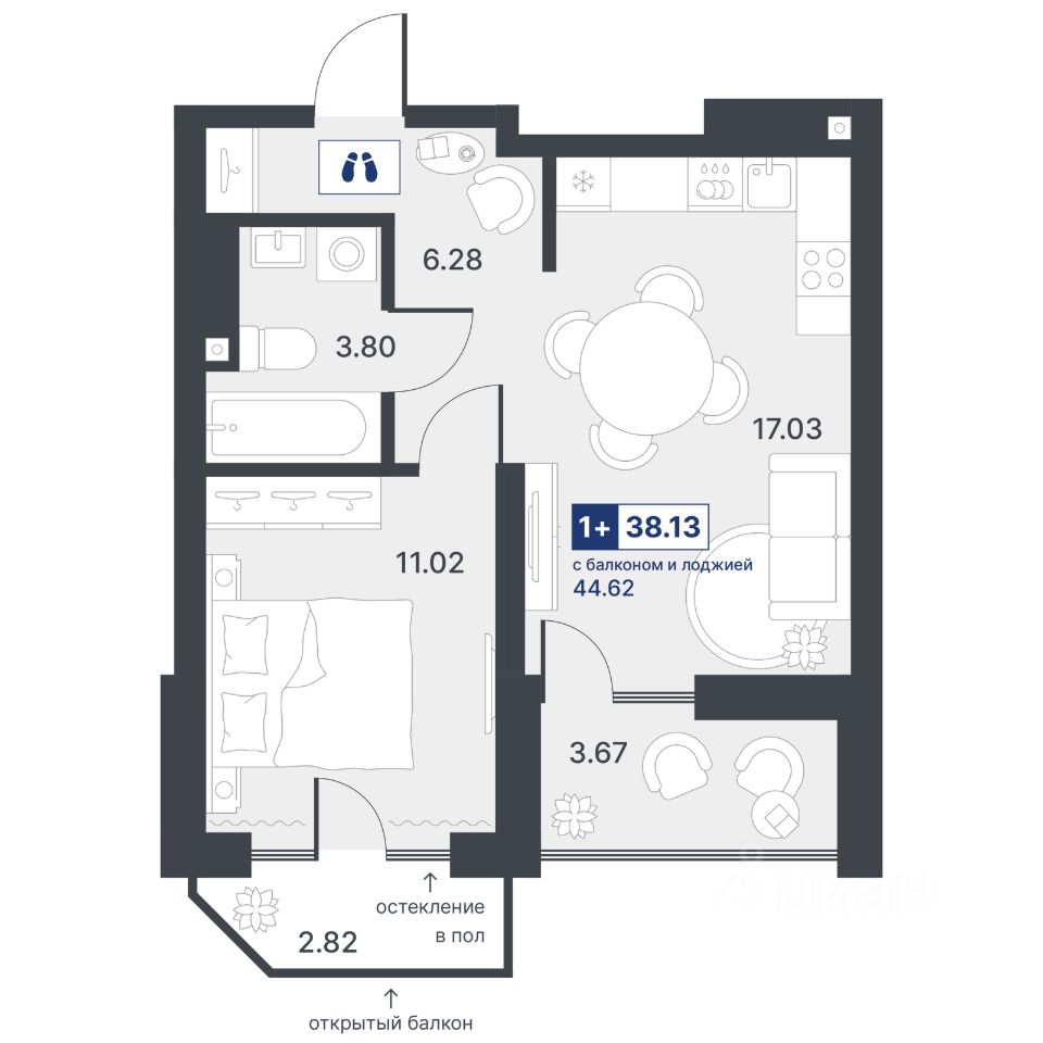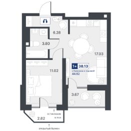 Общая площадь38,13 м²