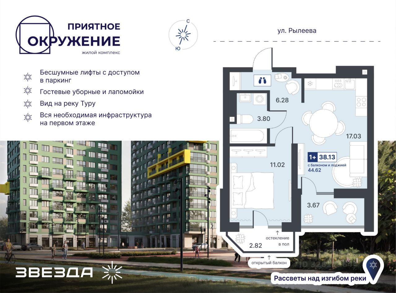 ЖК "Приятное окружение" комфорт-класса сочетает лаконичную архитектуру, продуманное благоустройство и эргономичные планировки. Двухсекционный дом с переменной этажностью расположен в уникальном месте: с одной стороны — дамба, с другой — зелёные массивы. Важно, что на стороне дамбы не предусмотрено строительство новых домов, а значит, из окон комплекса всегда будут открываться живописные виды на природный ландшафт. Есть квартиры с панорамными окнами и видами на набережную и мост Влюбленных. А в праздничные дни можно любоваться фейерверками, не выходя из дома.