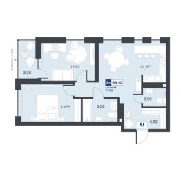 Общая площадь63,12 м²