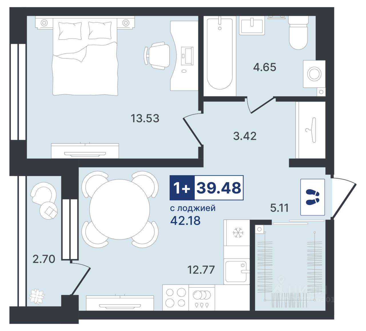 Общая площадь39,48 м²
