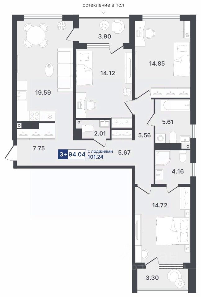 Общая площадь101,24 м²