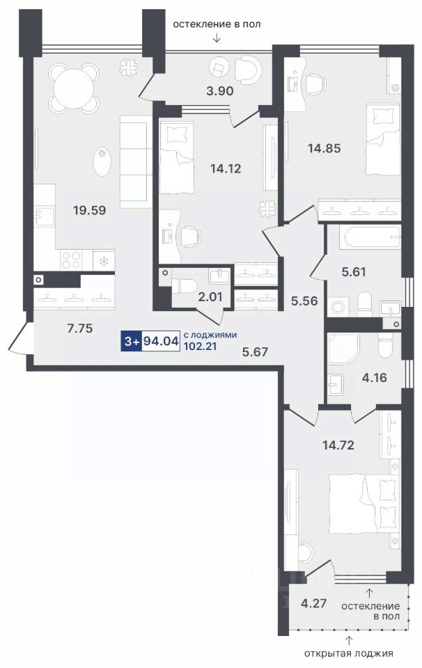 Общая площадь102,21 м²