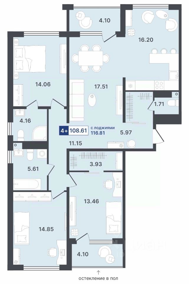 Общая площадь116,81 м²