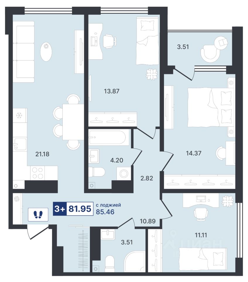 Общая площадь85,46 м²