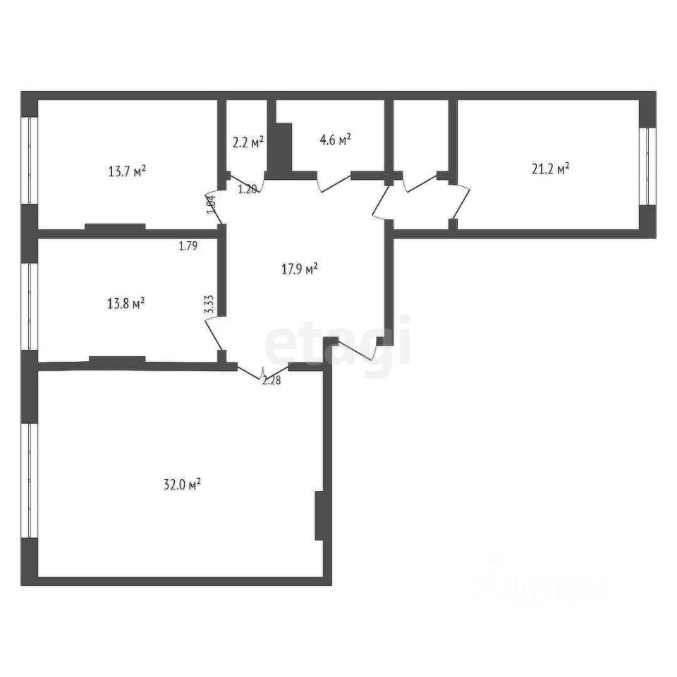 Площадь кухни32 м²