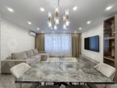 Уважаемые покупатели! Представляем вам 3х комнатную квартиру с кухней-гостиной в самом популярном жилом комплексе "Новин". Ремонт в квартире проводился по дизайн-проекту. Просторная кухня гостиная, 3 спальные зоны из них 2 детские комнаты, гардеробная комната с системой хранения, 2 сан.узла. В квартире установлены датчики теплого пола, кондиционер, что позволяет создавать удобный для каждого микроклимат. Для ремонта квартиры использовались дорогие, качественные материалы - на стенах итальянские заказные обои, напольное покрытие в коридоре, кухне-гостиной и сан.узлах- качественный керамогранит фирмы "Лапарет", в спальнях на полу влагостойкий ламинат 12 класса, дизайнерский текстиль и осветительные приборы. Сам жилой комплекс Новин отличается своей невероятной комфортностью и безопасностью. Особенность комплекса: закрытый двор без машин, комплексная система видеонаблюдения и круглосуточная охрана, прозрачные двери подъезда, домофон внутри подъезда, парковки по внешнему периметру двора, подземный теплый паркинг (есть семейный паркинг- цена отдельно обговаривается). Прямо с уровня паркинга работают лифты в подъезды), во дворе вместо асфальта уложена брусчатка, установлено спортивное и игровое оборудование, есть велодорожки и зоны отдыха. Квартал расположен на пересечении улиц 50 лет Октября и Одесской, отсюда легко добраться до любого района Тюмени. В шаговой доступности — школы 7,20 гимназии 12, 16, университеты - Тюменский государственный университет (Тюмгу), Тюменский индустриальный университет (туи), детские сады 58, 90, 100, 101, Областная клиническая больница 2, Гипермаркет Магнит, супермаркеты и аптеки, рестораны и салоны красоты, шиномонтаж и автомойки. Особенности жилья: вход в подьезд на уровне земли, без ступеней, в квартирах видеодомофоны, на первых этажах расположены помещения для колясок и велосипедов. Не влюбиться в нашу квартиру не возможно! Срочно! Бежим на просмотры! МЫ ГАРАНТИРУЕМ ФИНАНСОВУЮ БЕЗОПАСНОСТЬ ДЛЯ НАШИХ КЛИЕНТОВ. Код пользователя: 631 Номер в базе: 1120586