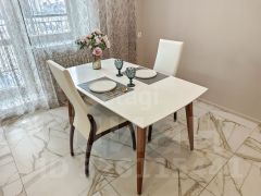Просторная кухня-гостиная площадью более 15 кв.м. с выходом на лоджию с панорамными окнами. Уютная спальня-кабинет площадью 20 кв.м. подарит вам возможность наслаждаться завораживающими пейзажами, особенно в вечернее время, с видом на огни города- создаут неповторимую атмосферу.