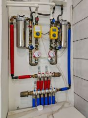 Вся квартира снабжена обособленными зонами подогрева пола с регулировкой температуры и времени нагрева.