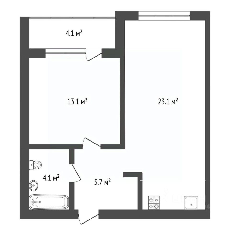 Площадь 46,4 м² утеплённый балкон 4,1 м² в кирпичном доме в районе Тюменская Слобода.