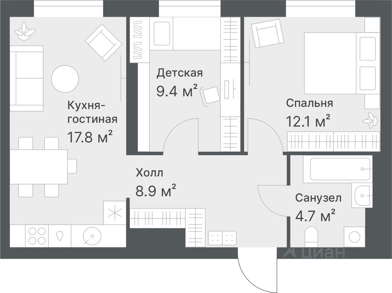 Общая площадь52,9 м²