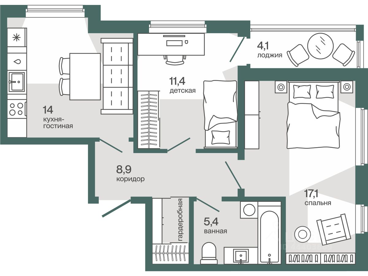 2-комнатная 58,9 м²