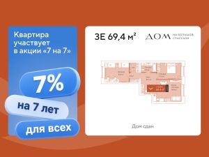 Первоначальный взнос 20% или 2 261 059 руб Евротрехкомнатная квартира площадью 69,4 м²