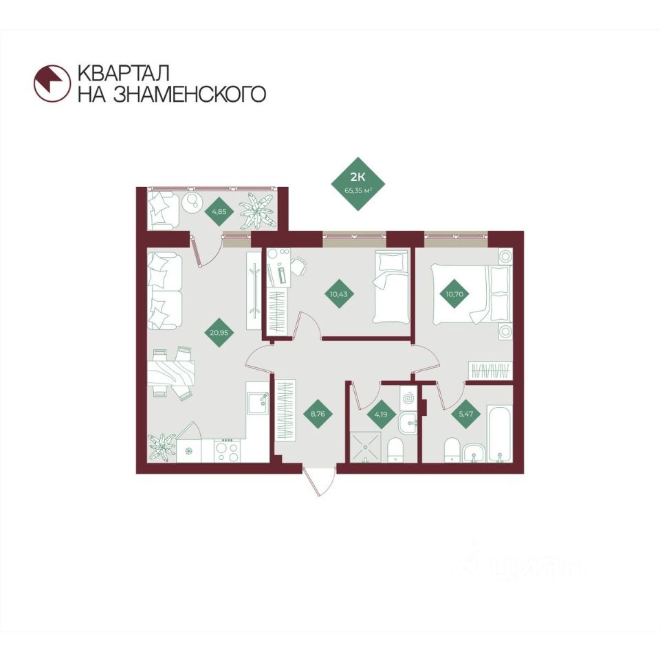 Продаётся 2-комнатная квартира в строящемся доме (2 очередь), срок сдачи: I-кв. 2027, общей площадью 65.35 кв.м., на 8 этаже. "Квартал на Знаменского" - новый жилой комплекс от компании "СтоунСтрой", расположенный по адресу: Тюменская обл., г. Тобольск, ул. 3Б микрорайон, 6Бк2.