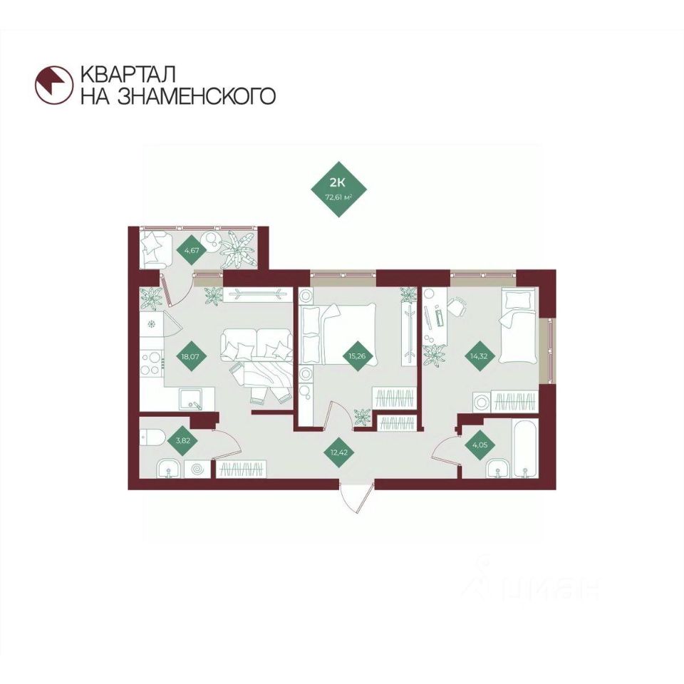 Продаётся 2-комнатная квартира в строящемся доме (2 очередь), срок сдачи: I-кв. 2027, общей площадью 72.61 кв.м., на 10 этаже. "Квартал на Знаменского" - новый жилой комплекс от компании "СтоунСтрой", расположенный по адресу: Тюменская обл., г. Тобольск, ул. 3Б микрорайон, 6Бк2.