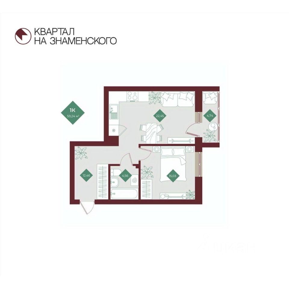 Продаётся 1-комнатная квартира в строящемся доме (2 очередь), срок сдачи: I-кв. 2027, общей площадью 59.24 кв.м., на 12 этаже. "Квартал на Знаменского" - новый жилой комплекс от компании "СтоунСтрой", расположенный по адресу: Тюменская обл., г. Тобольск, ул. 3Б микрорайон, 6Бк2.