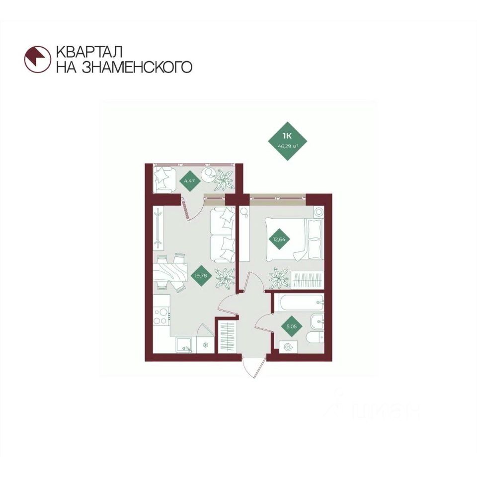 Продаётся 1-комнатная квартира в строящемся доме (2 очередь), срок сдачи: I-кв. 2027, общей площадью 46.29 кв.м., на 12 этаже. "Квартал на Знаменского" - новый жилой комплекс от компании "СтоунСтрой", расположенный по адресу: Тюменская обл., г. Тобольск, ул. 3Б микрорайон, 6Бк2.