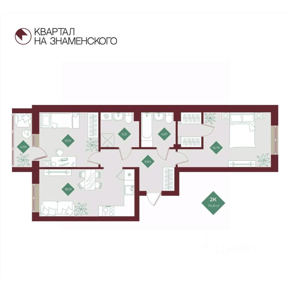 Продаётся 2-комнатная квартира в строящемся доме (2 очередь), срок сдачи: I-кв. 2027, общей площадью 74.41 кв.м., на 12 этаже. "Квартал на Знаменского" - новый жилой комплекс от компании "СтоунСтрой", расположенный по адресу: Тюменская обл., г. Тобольск, ул. 3Б микрорайон, 6Бк2.