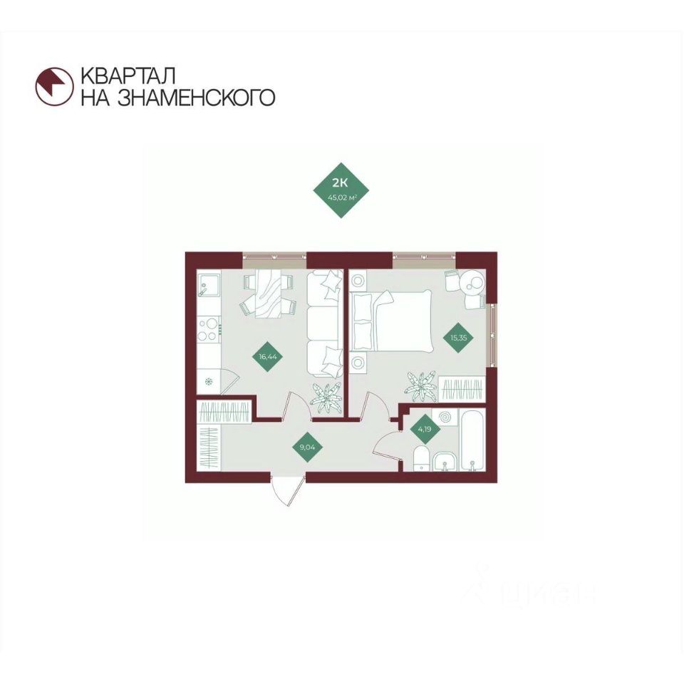 Продаётся 1-комнатная квартира в строящемся доме (2 очередь), срок сдачи: I-кв. 2027, общей площадью 45.02 кв.м., на 1 этаже. "Квартал на Знаменского" - новый жилой комплекс от компании "СтоунСтрой", расположенный по адресу: Тюменская обл., г. Тобольск, ул. 3Б микрорайон, 6Бк2.