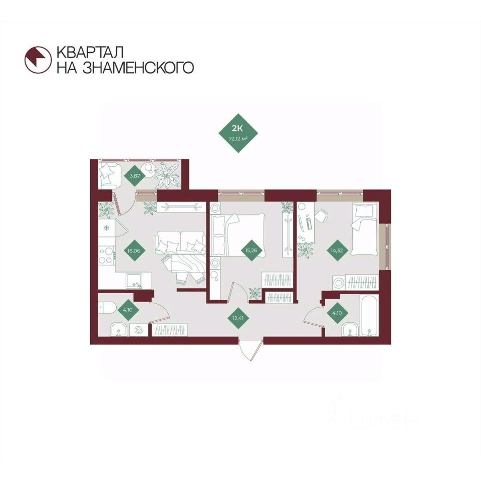 Продаётся 2-комнатная квартира в строящемся доме (2 очередь), срок сдачи: I-кв. 2027, общей площадью 72.12 кв.м., на 2 этаже. "Квартал на Знаменского" - новый жилой комплекс от компании "СтоунСтрой", расположенный по адресу: Тюменская обл., г. Тобольск, ул. 3Б микрорайон, 6Бк2.