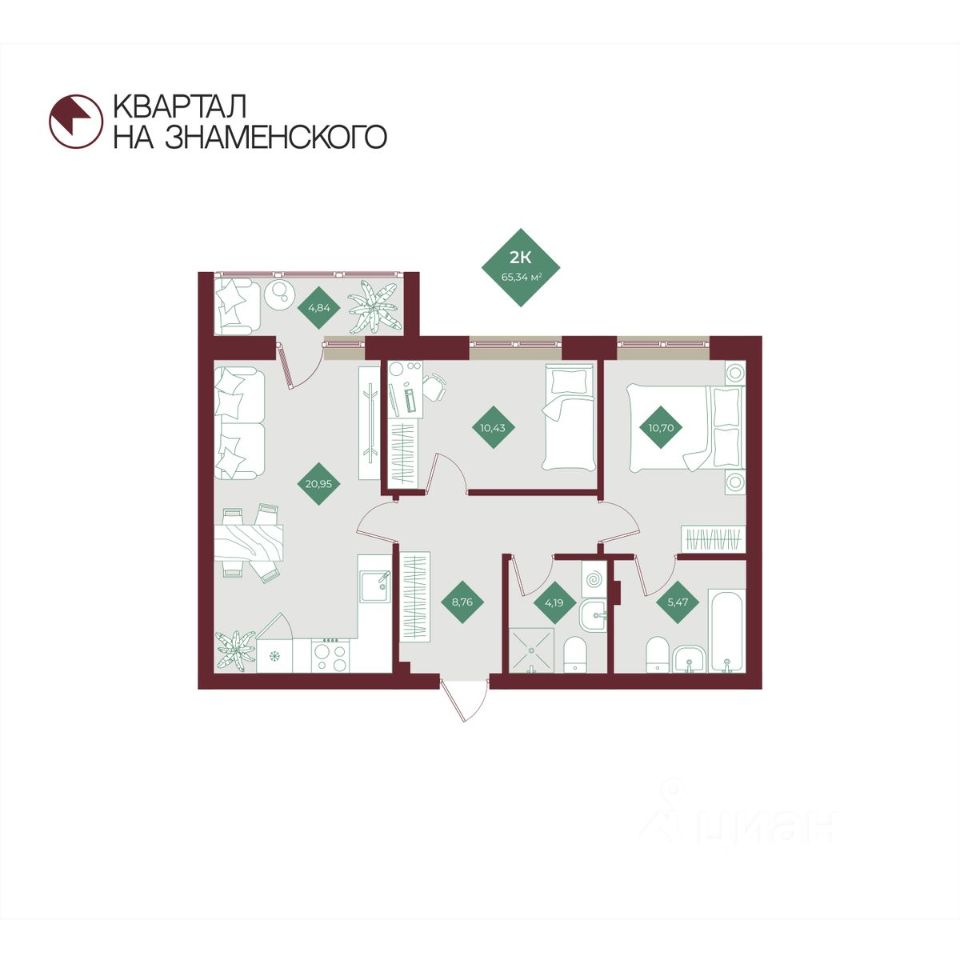 Продаётся 2-комнатная квартира в строящемся доме (2 очередь), срок сдачи: I-кв. 2027, общей площадью 65.34 кв.м., на 6 этаже. "Квартал на Знаменского" - новый жилой комплекс от компании "СтоунСтрой", расположенный по адресу: Тюменская обл., г. Тобольск, ул. 3Б микрорайон, 6Бк2.