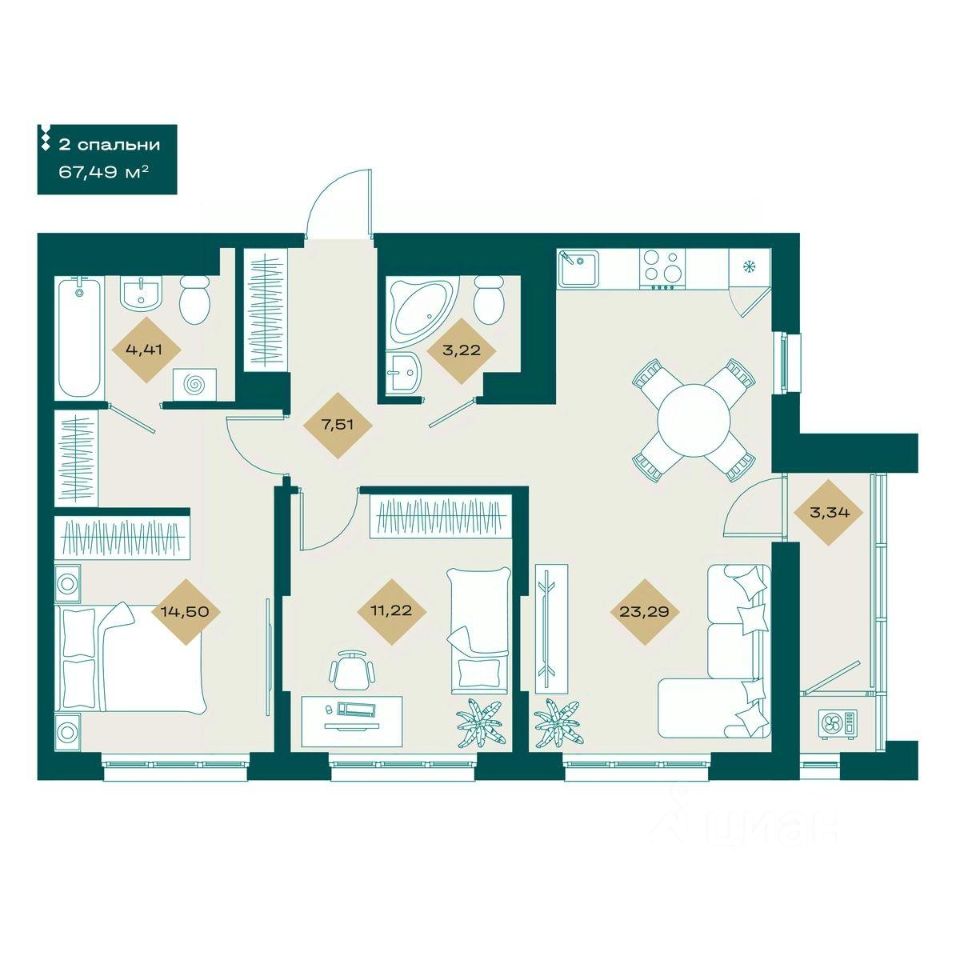 Продаётся 2-комнатная квартира в строящемся доме (Тимофея Кармацкого, 1 ), срок сдачи: IV-кв. 2026, общей площадью 67.49 кв.м., на 23 этаже. Новый жилой комплекс "Секреты" от Специализированного застройщика "СТОУН ДЕВЕЛОПМЕНТ" расположен по адресу: г. Тюмень, по ул. Тимофея Кармацкого.