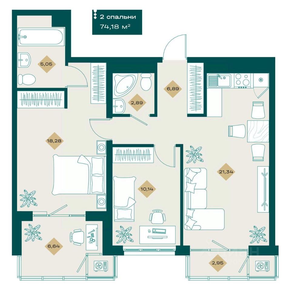 Продаётся 2-комнатная квартира в строящемся доме (Тимофея Кармацкого, 1 ), срок сдачи: IV-кв. 2026, общей площадью 74.18 кв.м., на 13 этаже. Новый жилой комплекс "Секреты" от Специализированного застройщика "СТОУН ДЕВЕЛОПМЕНТ" расположен по адресу: г. Тюмень, по ул. Тимофея Кармацкого.