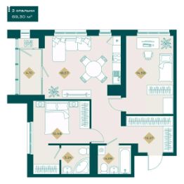 Продаётся 2-комнатная квартира в строящемся доме (Тимофея Кармацкого, 1 ), срок сдачи: IV-кв. 2026, общей площадью 69.3 кв.м., на 13 этаже. Новый жилой комплекс "Секреты" от Специализированного застройщика "СТОУН ДЕВЕЛОПМЕНТ" расположен по адресу: г. Тюмень, по ул. Тимофея Кармацкого.