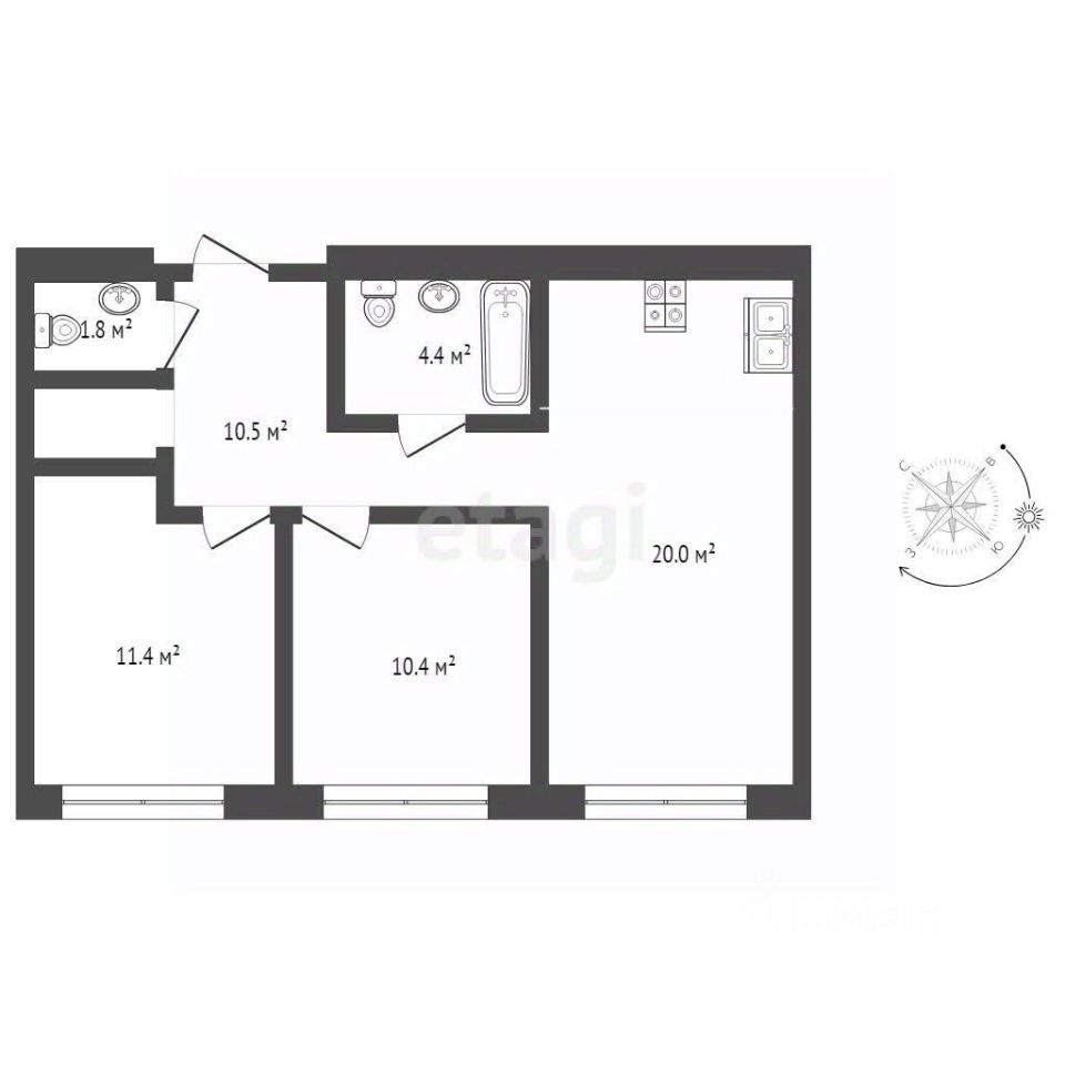 Продается квартира формата 2+(кухня-гостиная и две отдельных комнаты) в жилом комплексе комфорт класса "Ньютон"