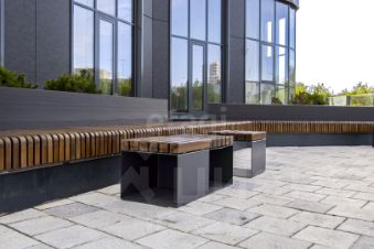 Второй и третий уровень — это "парящие дворы" на стилобате 2 этажа и на эксплуатируемой кровле 19 этажа с озеленением, местами для отдыха и занятий спортом. На первом этаже предусмотрена просторная колясочная, зона для хранения спортинвентаря, лапомойка для домашних питомцев, мягкая зона ожидания гостей, стойка ресепшн, место под кофе-поинт, комната матери и ребенка, гостевой санузел и 2 лифтовых холла.