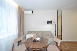 При продаже покупателю остаётся кухонный гарнитур со встроенной техникой (варочная поверхность и вытяжка над ней, духовой шкаф, СВЧ-печь, холодильник, посудомоечная машина), кондиционер, обеденная зона (стол и стулья), диван в кухне-гостиной; двуспальная кровать и шкаф в спальне; шкаф в прихожей; сантехника, шкаф с коммуникациями для скрытой установки стиральной машины, тёплый пол с электрорегулятором и беспроводная аудиоточка для релакса в ванной/санузле. Также практически в каждом помещении сделана атмосферная декоративная подсветка!