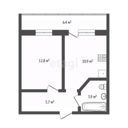 Функциональная планировка квартиры: просторная кухня правильной формы более 10 кв.м. с выходом на огромную 6.4 кв.м., остекленную лоджию (её можно при желании утеплить и использовать, например, как рабочий кабинет, лаунж-зону, зимний сад), совмещенный сан.узел, спальную комнату. Общая площадь квартиры с учетом лоджии 40 кв.м.