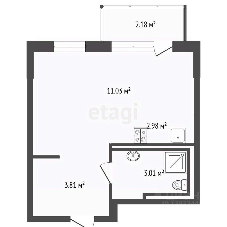 Продам квартиру-студию общей площадью 21,48 кв.м. с балконом.