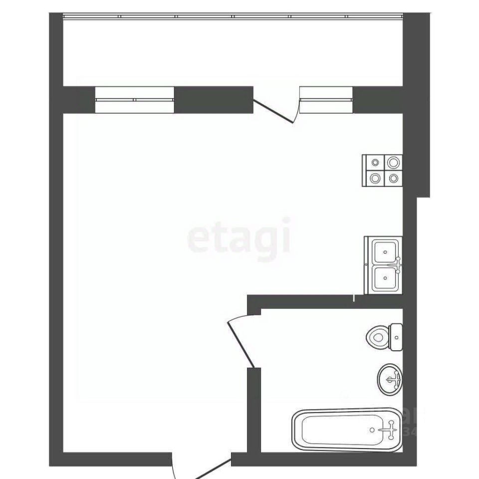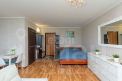 Общая площадь 32,7 м2. Удобная планировка, все пространство грамотно зонировано, выделена зона кухни, обеденная зона, зона отдыха и спальная зона. Санузел совмещён. Большая лоджия, что дополнительно позволяет расширить пространство, можно оборудовать кабинет и места для хранения. Два больших окна обеспечивают хорошее освещение и поступление свежего воздуха