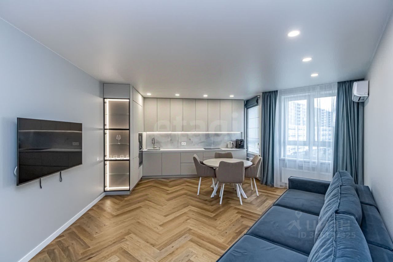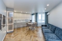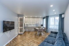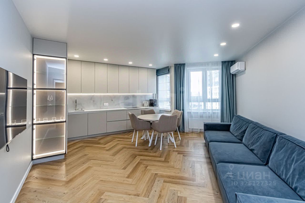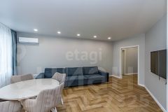 В квартире недавно выполнен современный ремонт из качественных материалов. Установлены кондиционеры. Окна выходят на две стороны дома.
