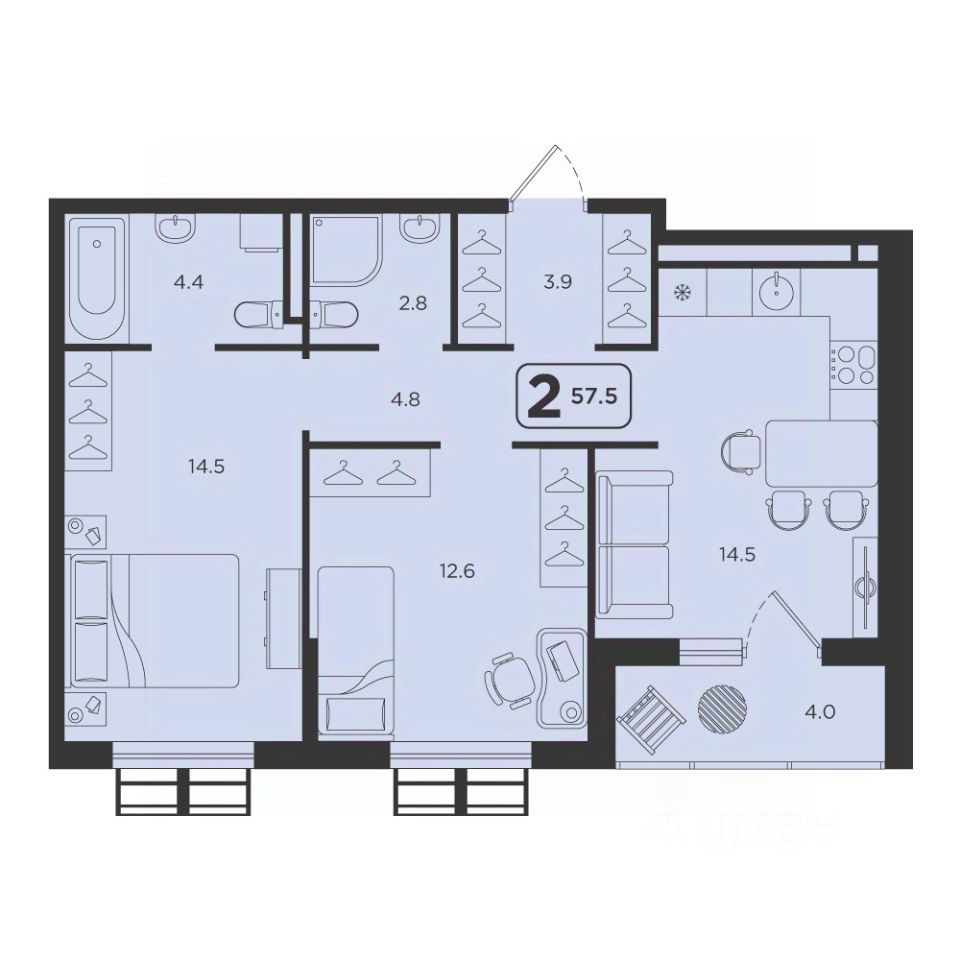 Продаётся 2-комнатная квартира в строящемся доме (ГП-2, секции 1, 2), срок сдачи: I-кв. 2027, общей площадью 57.5 кв.м., на 3 этаже. ЖК "Симфония" - новый проект комфорт-класса в центре Тюмени, будет расположен в пределах улиц Харьковская - Холодильная - Мельникайте."Симфония" - это комплекс из 6 домов переменной этажности в монолитно-каркасном исполнении, отделка фасадов выполнена с применением клинкерного кирпича и по технологии "мокрый фасад", что придает домам стильный и современный вид. Украшением района станет архитектурная концепция и подсветка домов ЖК "Симфония".Охраняемая закрытая территория комплекса с круглосуточным видеонаблюдением, двор без машин, все дома объединены пешеходным бульваром, на 1 этаже предусмотрена торговая галерея, детские площадки с многоуровневыми игровыми комплексами, воркаут зоной с безопасным прорезиненным покрытием.Бесплатный Wi-Fi во дворе, удобный вход в подъезды для маломобильных граждан и мам с колясками, колясочные, лапомойка для домашних питомцев, дизайнерские холлы подъездов, кладовые в подземном паркинге - все это будет реализовано в новом ЖК.Все квартиры с кухнями-гостиными, гардеробными, для любителей проводить время на свежем воздухе - квартиры с террасами.