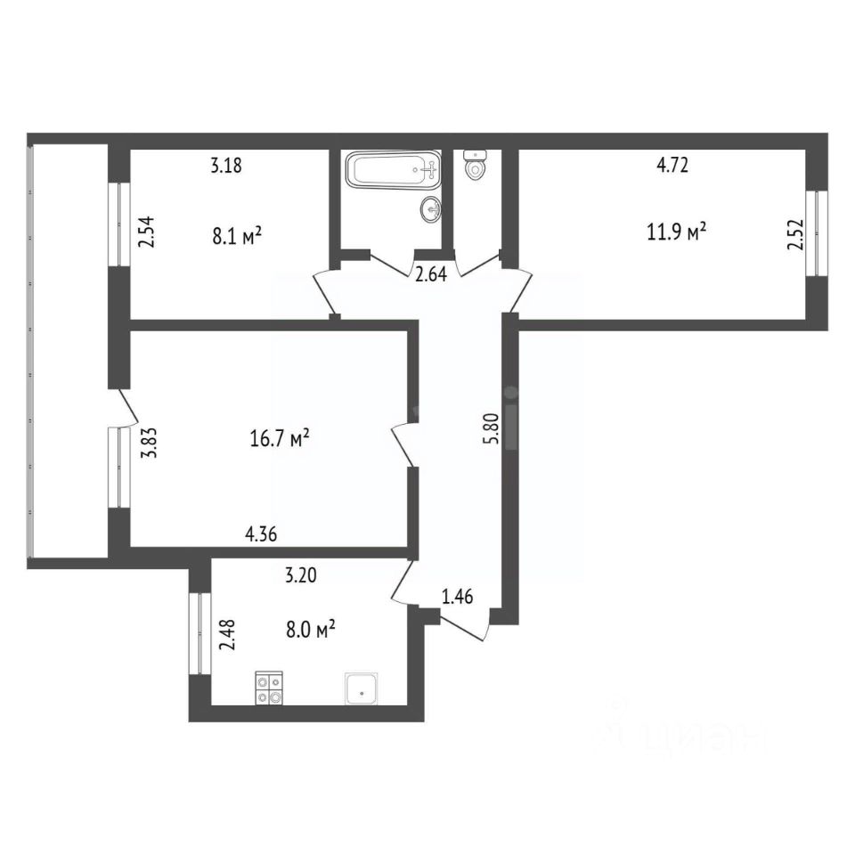 Удобная планировка "распашонка": Все комнаты - правильной квадратной