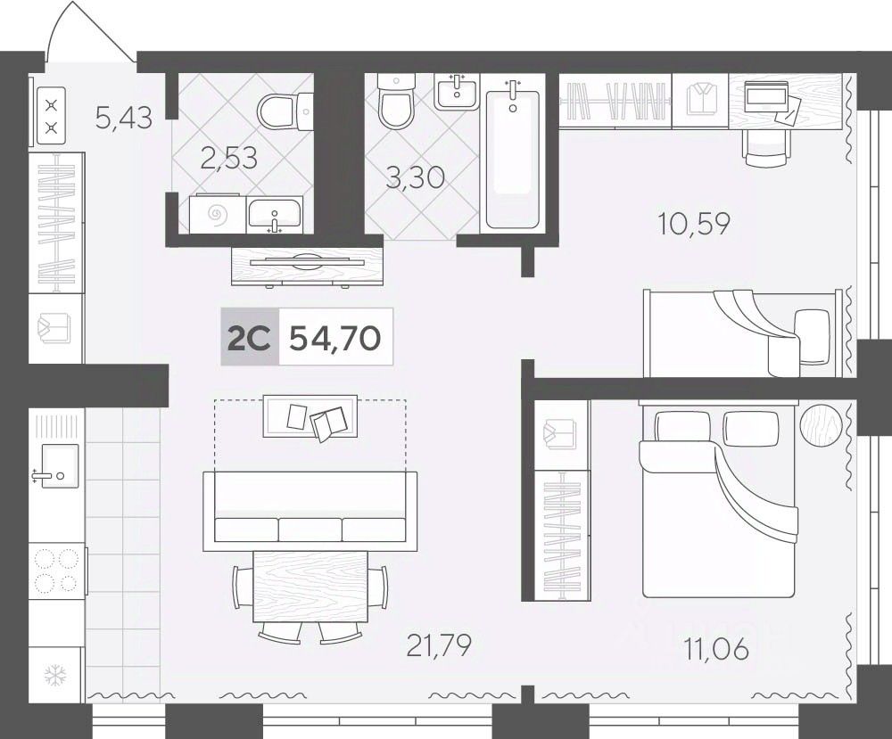 Продаётся 2-комнатная квартира в строящемся доме (ГП 2 (Сергея Корепанова, 34)), срок сдачи: IV-кв. 2027, общей площадью 54.7 кв.м., на 5 этаже. Новый жилой комплекс "Скандиа. Квартал у Леса" от Специализированного застройщика "СКАНДИА У ЛЕСА" расположен в г. Тюмень на ул. Бориса Прудаева.