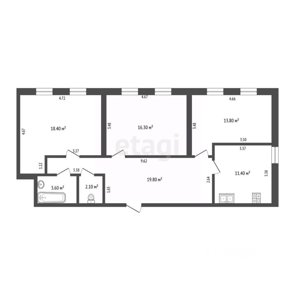 ОБЪЕКТ: квартира формата 3+, площадь 85,4 кв.м., 2 этаж 24-этажного дома