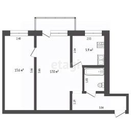 Продается двухкомнатная квартира площадью 43,7 кв.м. на третьем этаже кирпичного дома в Центральном районе Тюмени.