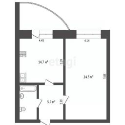 Продается просторная однокомнатная квартира общей площадью 50 кв.м, что значительно превышает стандартные параметры подобного жилья.