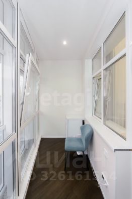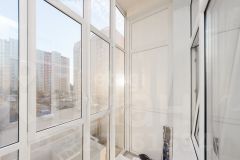 На длинной лоджии устроена тёплая зона — пластиковая конструкция REHAU с утеплением стен, потолка и пола. Сделан тёплый пол с термостатом Schneider Electric, выведено освещение и розетка.