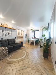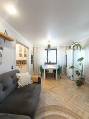 Окна выходят на две стороны света - южную и северную, во двор и на школу. Муниципальный детский сад в пяти минутах ходьбы.
