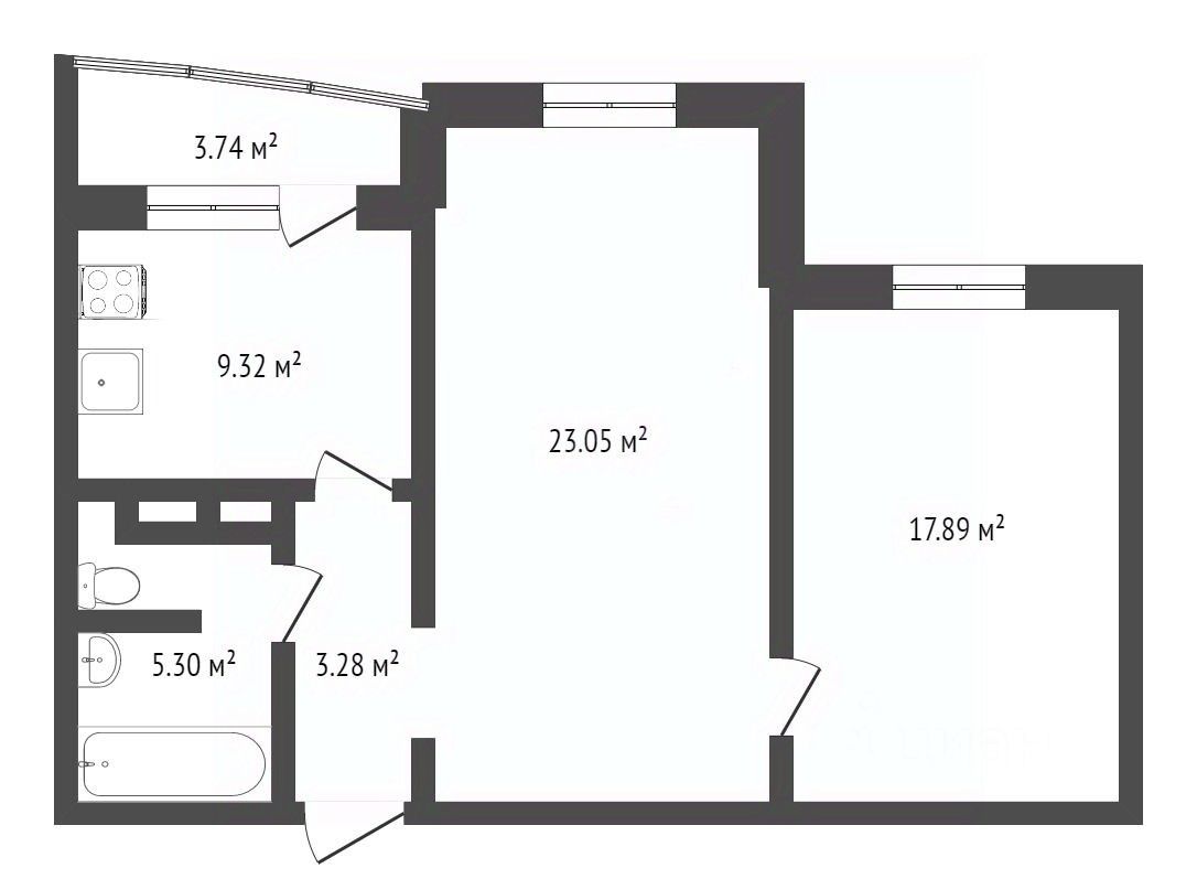 Эта квартира создана для семейной жизни. В квартире большие комнаты (23,1 м² и 17,9 м²)! Выход на балкон из кухни.